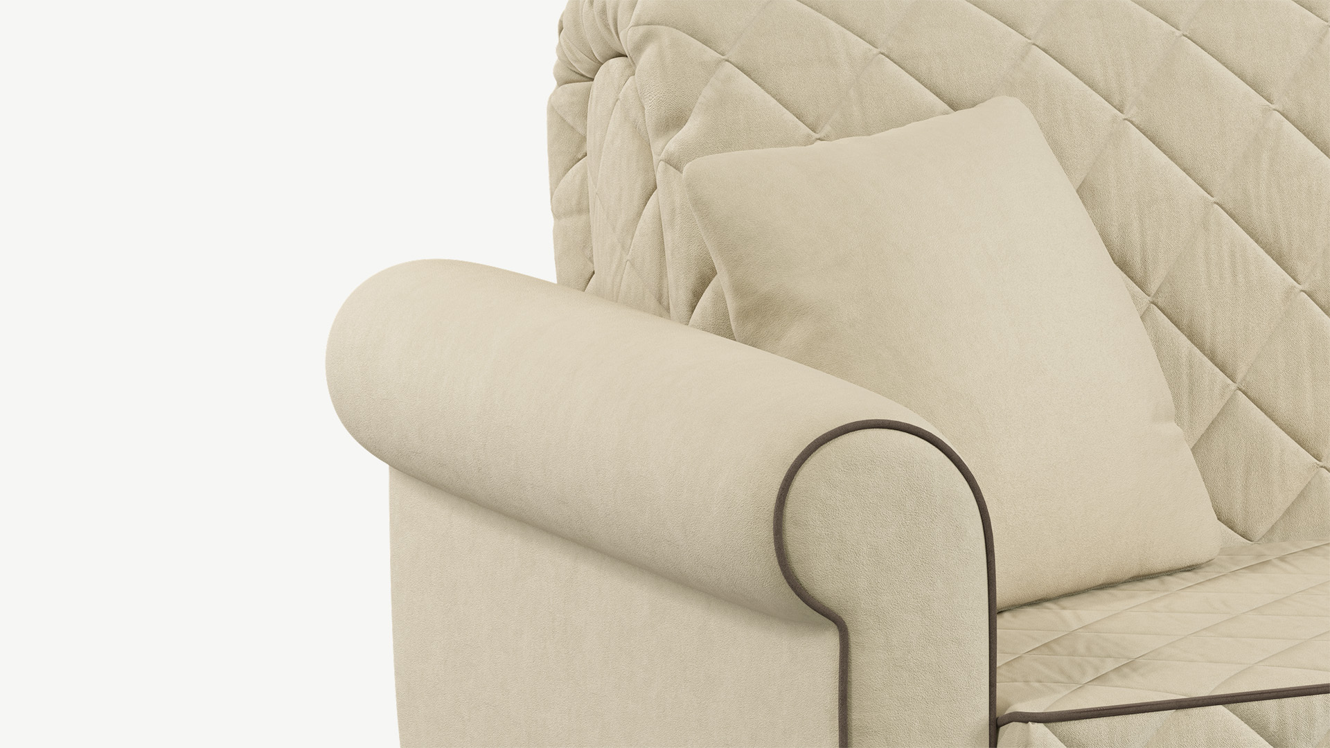 Стежка на посадочном месте минимизирует возможность растяжения обивочного материала, возникающую в процессе эксплуатации.