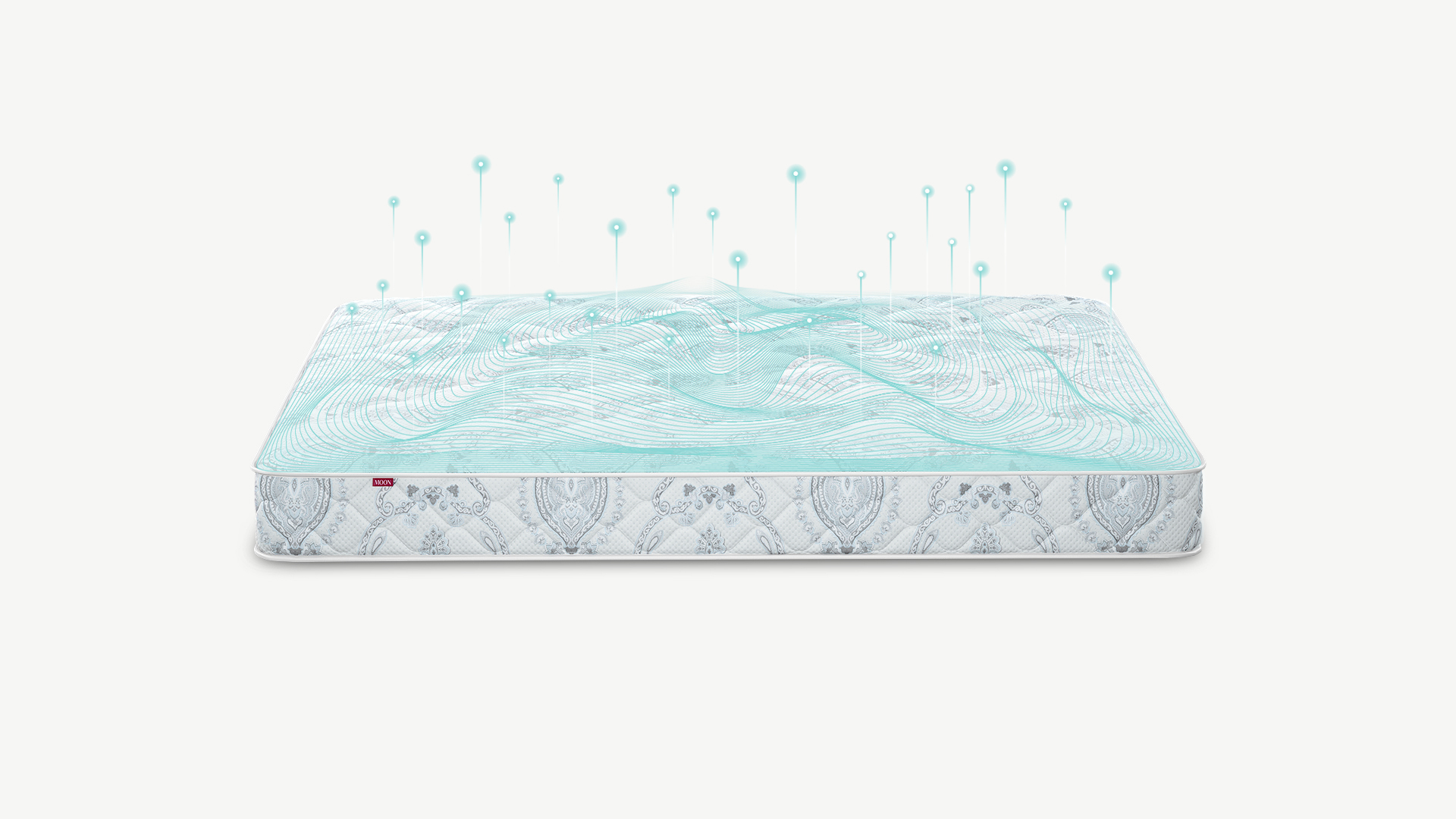 Обеспечивает упругую поддержку тела, воздействуя как множество микропружин, снимает лишнюю нагрузку с мышц и помогает расслабиться.