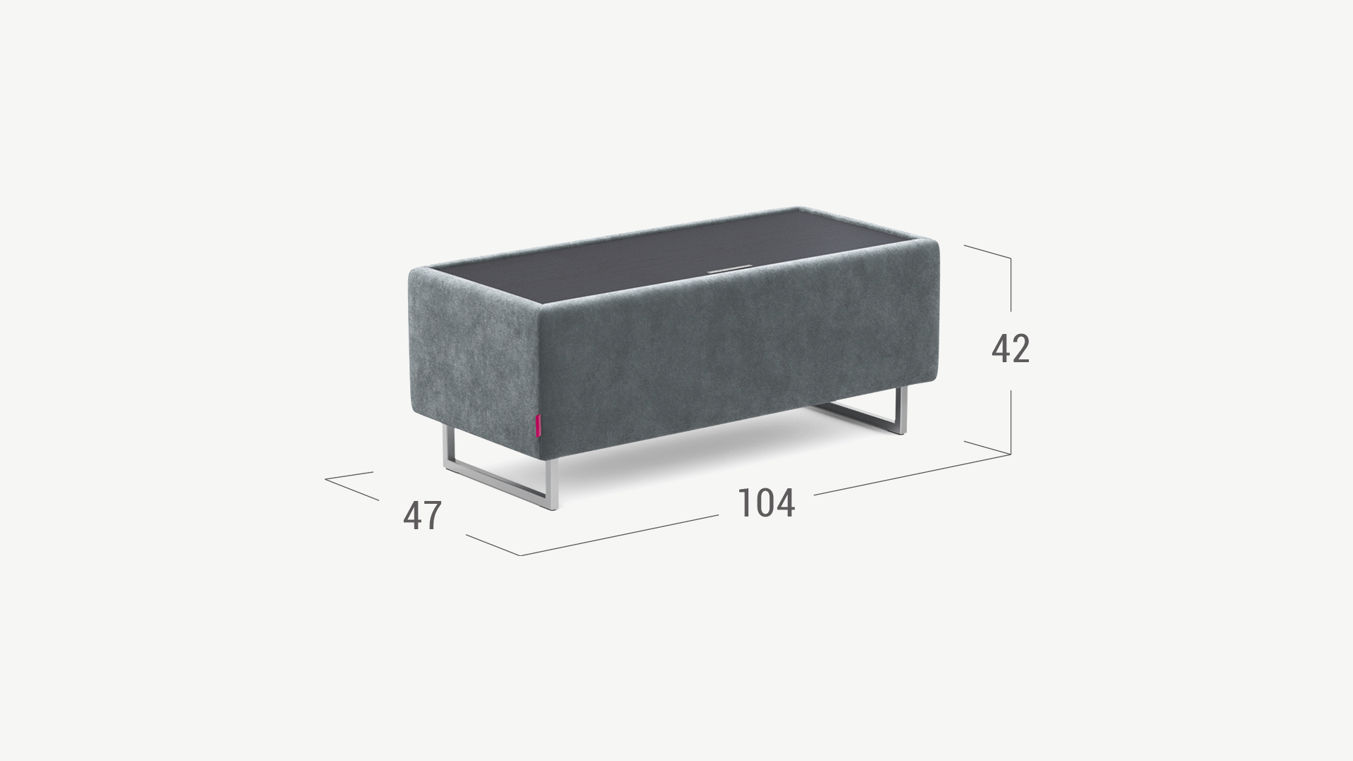 MOON 117 снабжена встроенной столешницей, а также вместительной емкостью для хранения. Легкий доступ к внутренней части банкетки обеспечивает скрытая в столешнице ультратонкая ручка. Оснащенная газовыми амортизаторами, крышка-столешница функционирует плавно и бесшумно. Надежно фиксируясь в открытом положении, она обеспечивает комфортный доступ к содержимому.