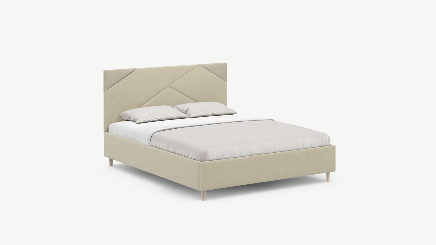 Элегантным и практичным акцентом служат скрытые карманы, расположенные по его углам. Лаконичные формы объемных царг создают единый гармоничный образ и фокусируют внимание на центральном текстурном элементе кровати.
