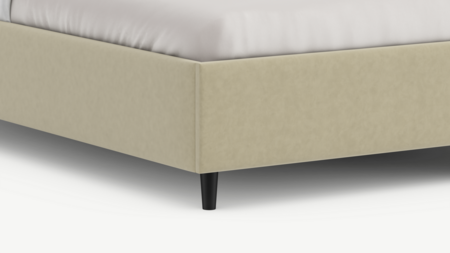 Элегантным и практичным акцентом служат скрытые карманы, расположенные по его углам. Лаконичные формы объемных царг создают единый гармоничный образ и фокусируют внимание на центральном текстурном элементе кровати.