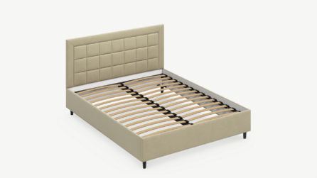 Рама, изголовье и царги надежно крепятся между собой, обеспечивая прочность и устойчивость кровати.