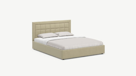 Кровать MOON FAMILY 1251 украшена объемной стежкой-рисунком. Особую выразительность стежка в крупный квадрат получает за счет глубины шва и фактурности проступающего рисунка. Помещенная в центр изголовья, стежка обрамлена тканью, словно картина – рамой. Формы MOON FAMILY 1251 оставлены максимально простыми. Едва заметные вертикальные шовчики на боковых царгах кровати добавляют образу шарма, удачно оттеняя уверенное звучание прямых и искусный декор изголовья.