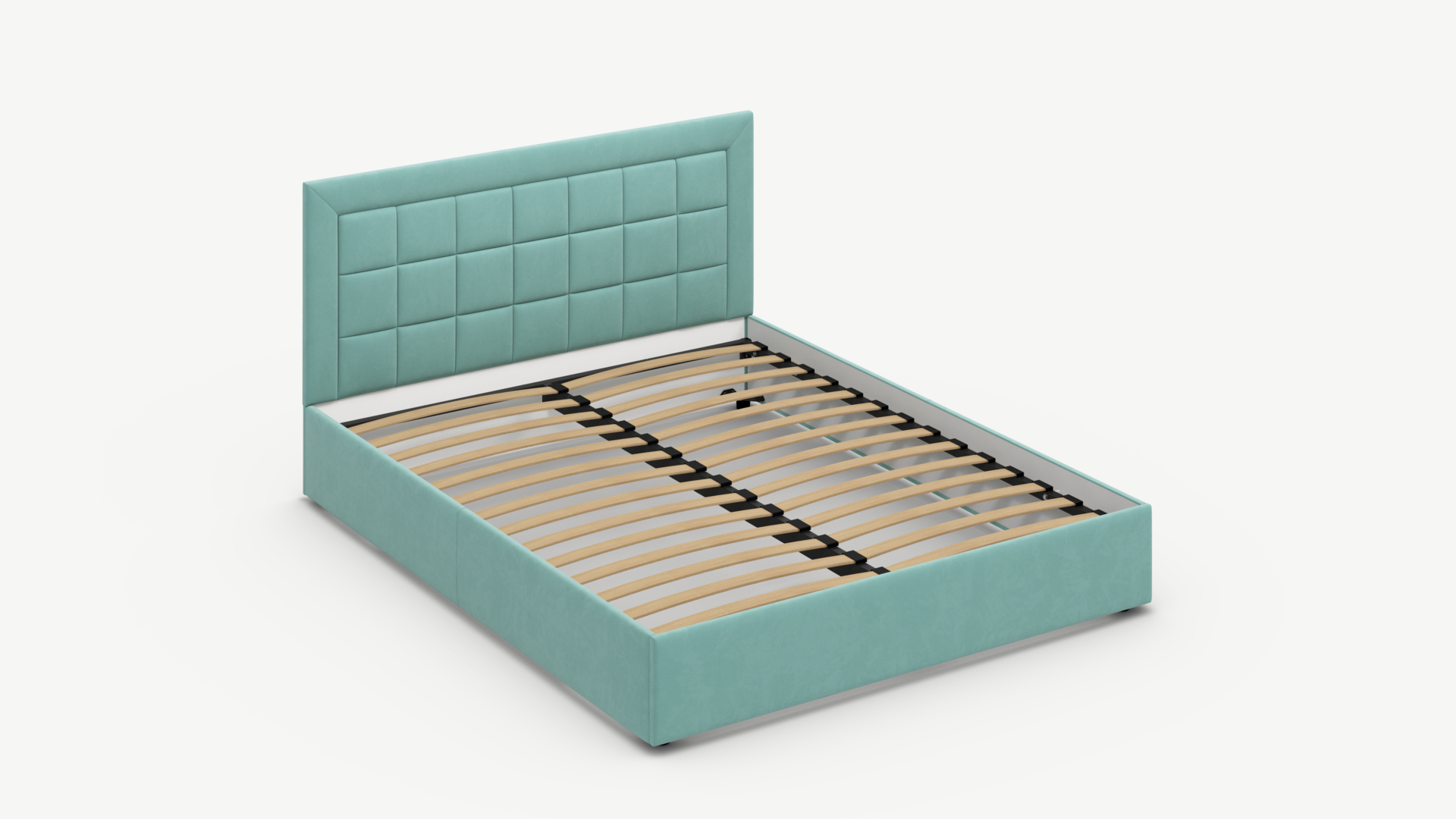 Рама, изголовье и царги надежно крепятся между собой, обеспечивая прочность и устойчивость кровати.