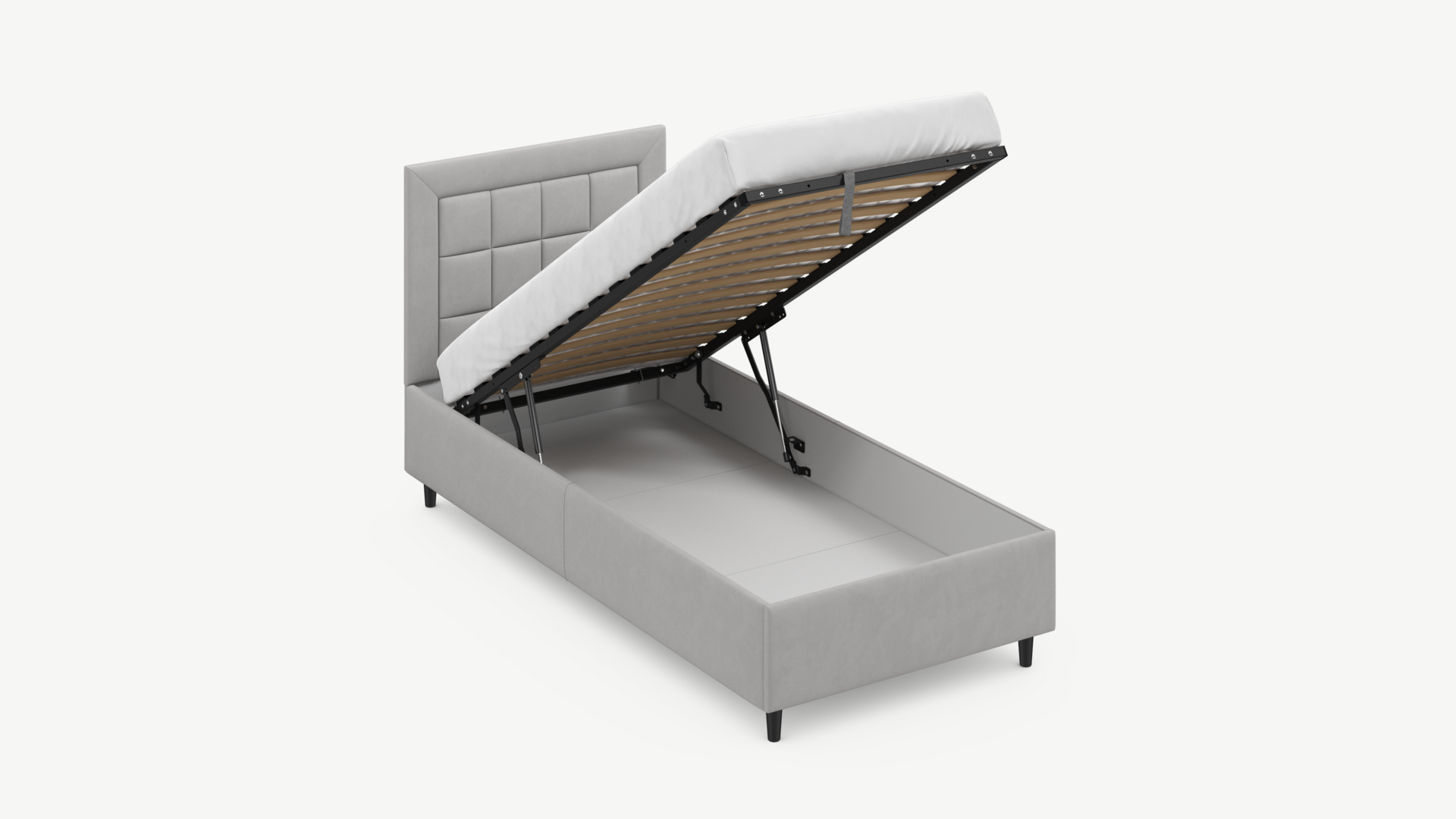 Вместительная емкость под кроватью без внутренних перегородок позволяет использовать для хранения вещей 100% пространства.