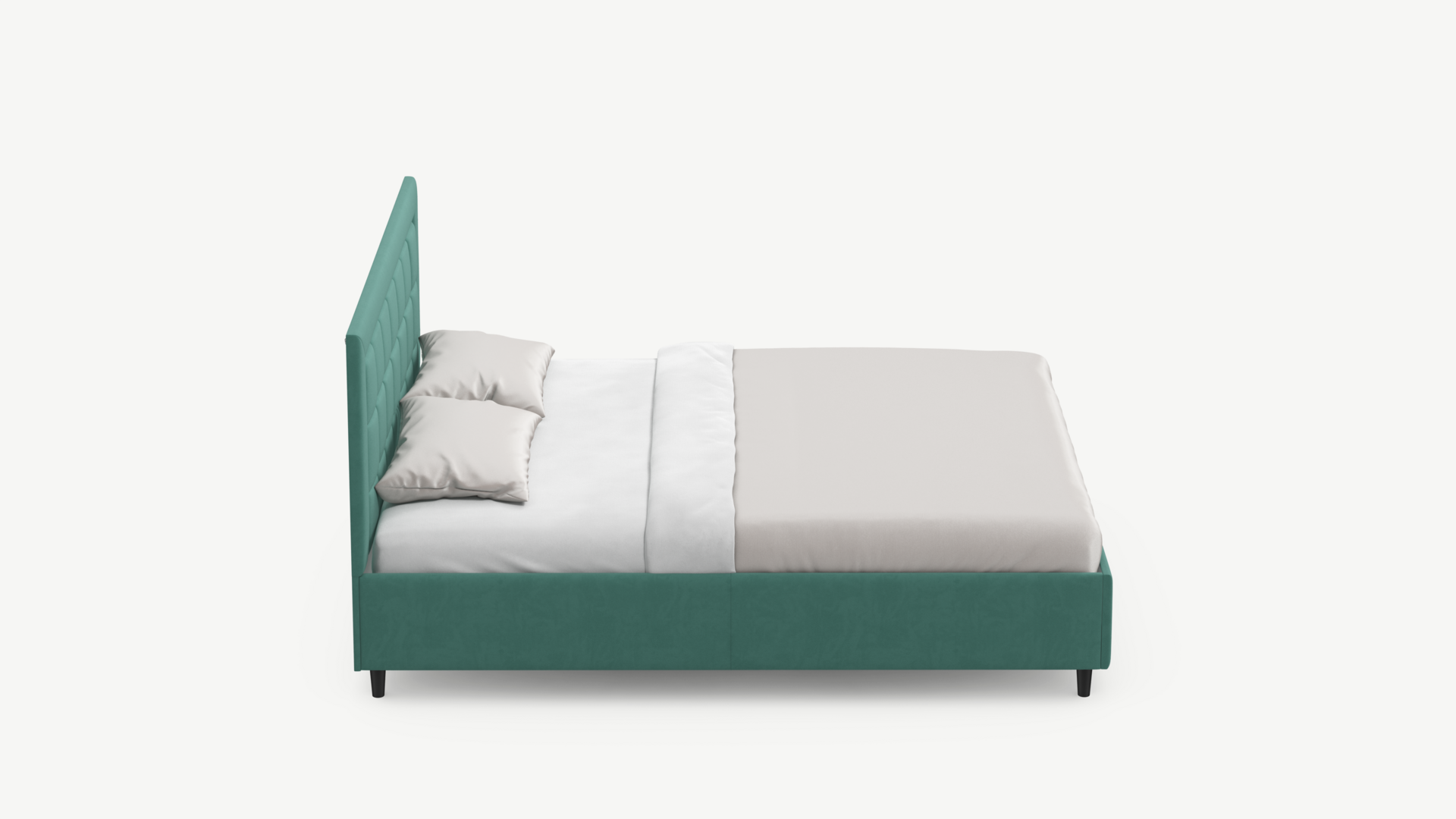 Стежка помещена в центр изголовья и обрамлена, словно картина. Объемные царги становятся гармоничным дополнением образа и завершают цельную фигуру кровати.