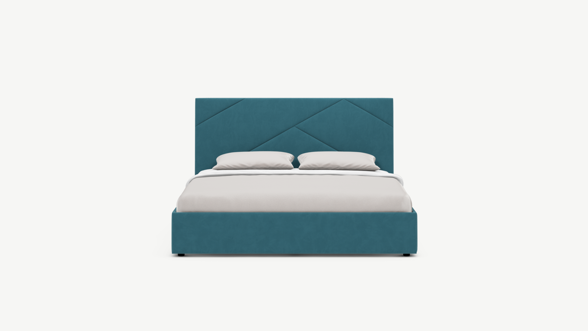 MOON FAMILY 1257 привлекает внимание оригинальным исполнением: широкие полосы ткани эффектно пересекают периметр изголовья, создавая на нем графический орнамент. Элегантным и практичным акцентом служат скрытые карманы, расположенные по его углам. Лаконичные формы объемных царг создают единый гармоничный образ и фокусируют внимание на центральном текстурном элементе кровати.