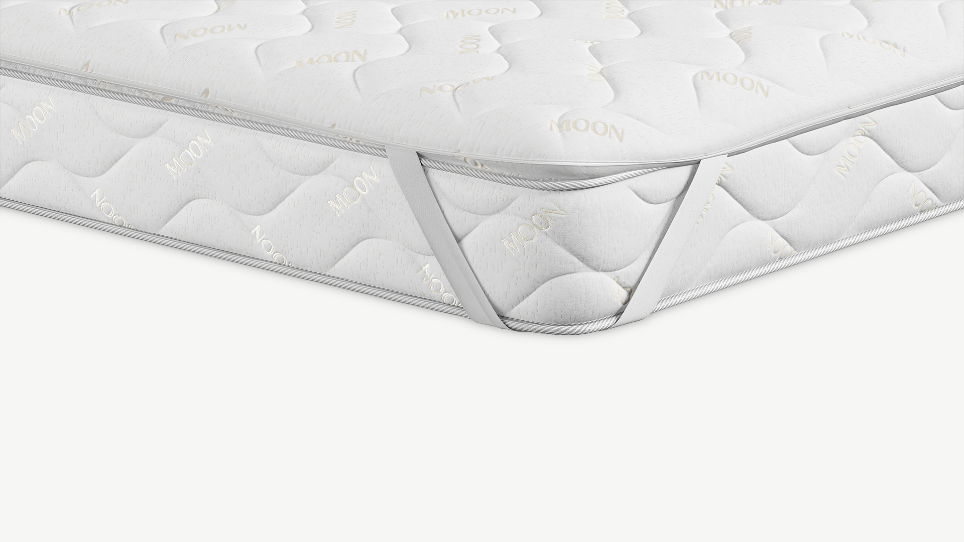 Топпер можно использовать как на диване, так и на матрасе. Фиксация на поверхности спального места осуществляется с помощью широких резинок в четырех угловых точках.
