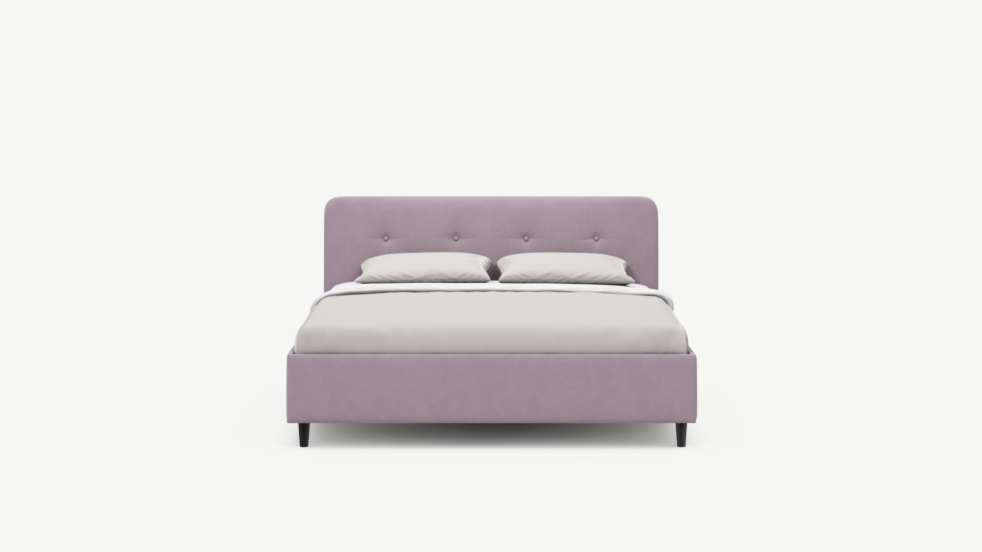 Царга, задающая пропорции, благодаря гладкости своей фактуры подчеркивает центральный элемент декора. Высокие опоры приподнимают фигуру кровати над полом и добавляют её образу визуальной легкости.
