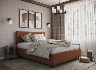 Рама, изголовье и царги надежно крепятся между собой, обеспечивая прочность и устойчивость кровати.