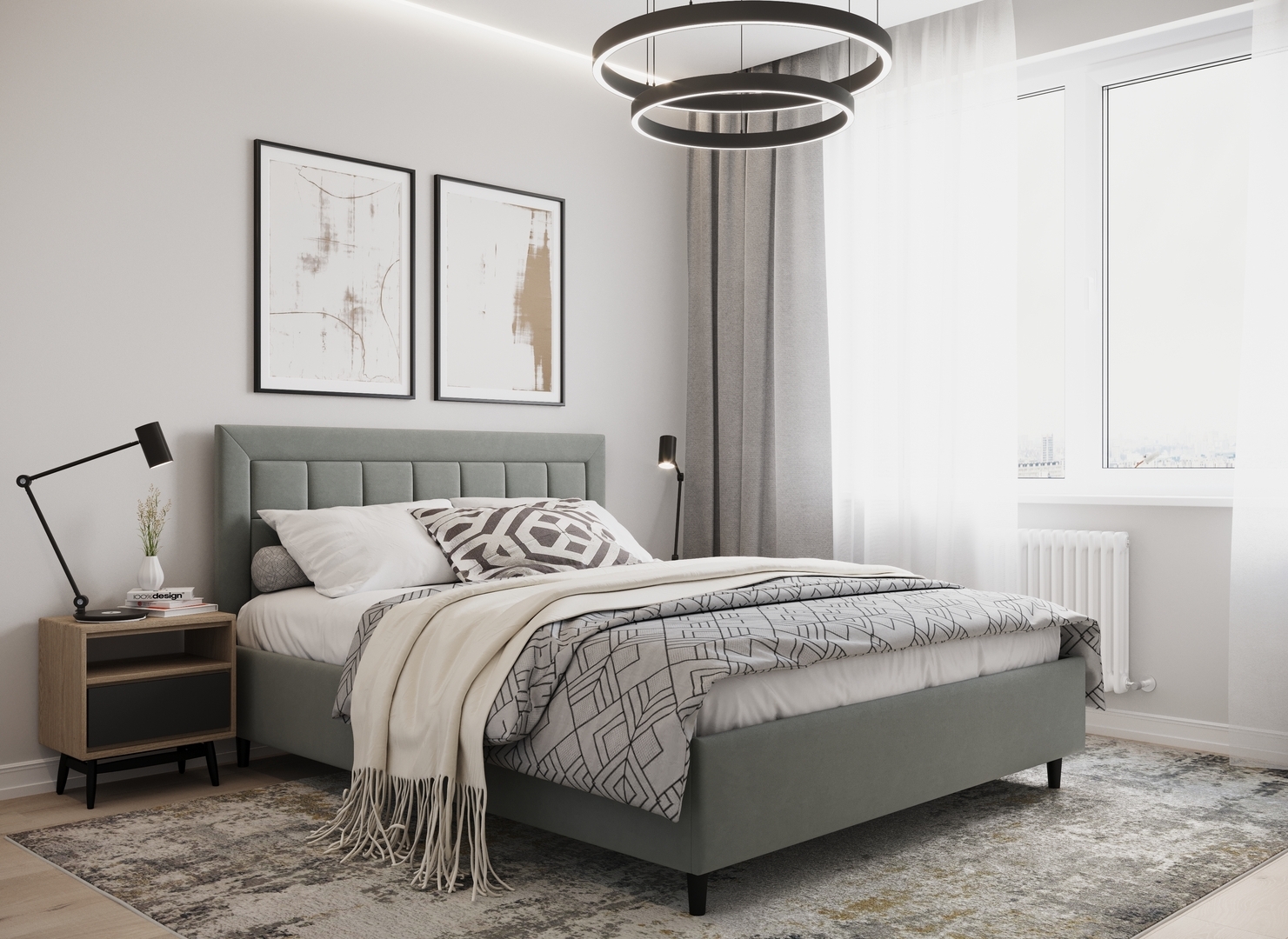 Создать гармоничный интерьер и завершить образ спальни помогут дополнительные аксессуары, например: тумбы, банкетки, подушки.