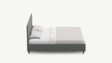 Фактура обивочного материала подбирается дизайнерами с учетом технологических и стилевых особенностей кровати.