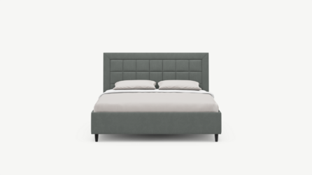 Изголовье декорировано рельефным рисунком стежки в крупный квадрат, получившим особую фактуру за счет глубины шва.