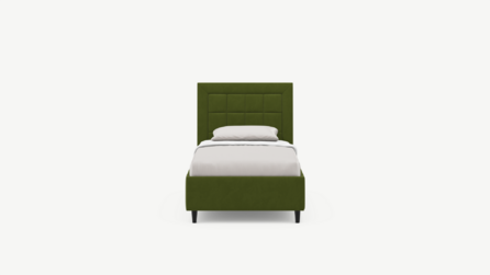 Изголовье декорировано рельефным рисунком стежки в крупный квадрат, получившим особую фактуру за счет глубины шва.