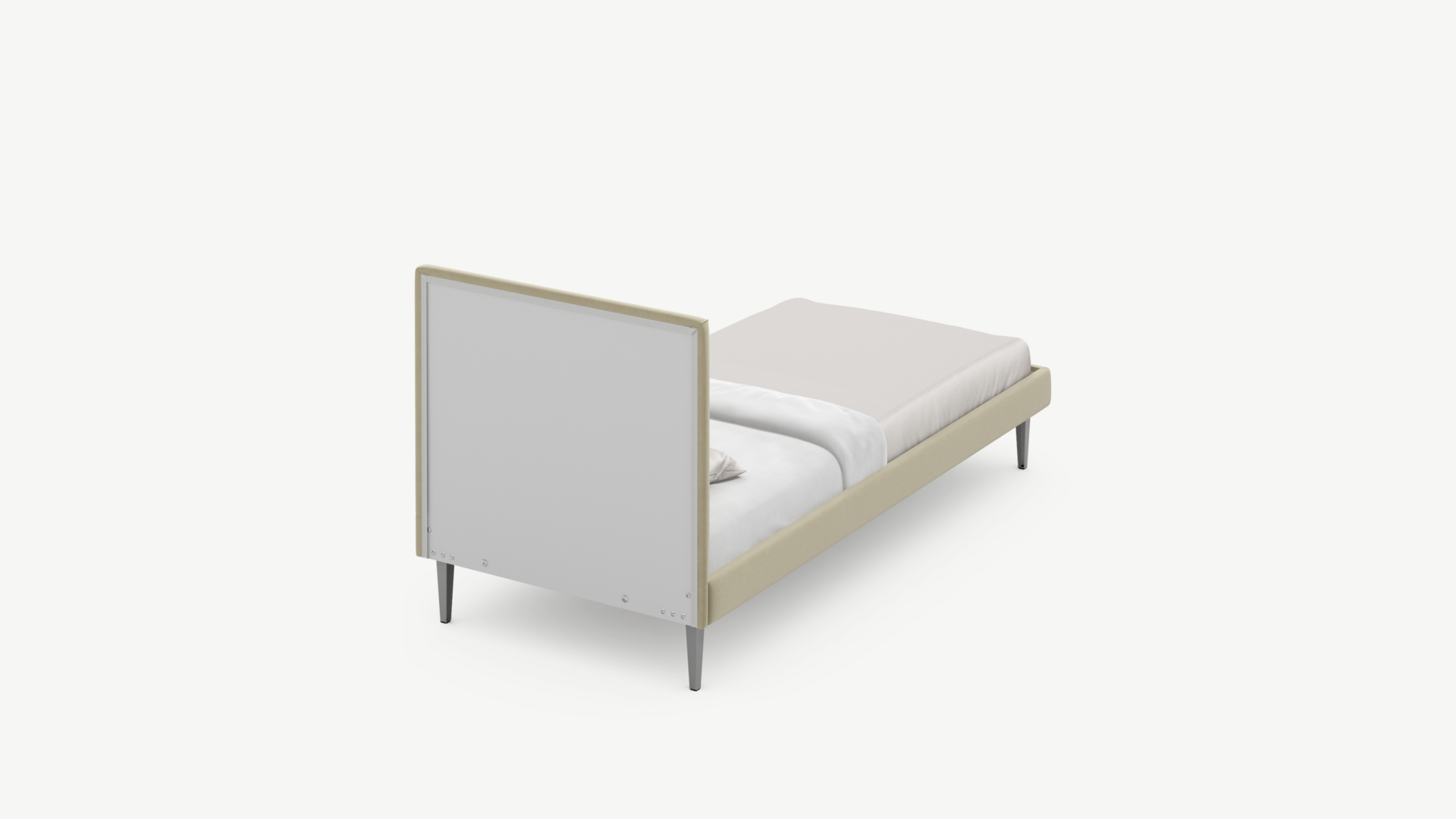 Кровать MOON FAMILY 1256 демонстрирует безупречный баланс изящных пропорций. Лаконичное изголовье, узкие царги и высокие опоры создают эффектный образ, привносящий в пространство спальни стильный и яркий акцент.
