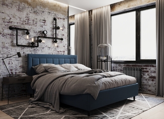 Стежка помещена в центр изголовья и обрамлена, словно картина. Объемные царги завершают цельную фигуру кровати и становятся гармоничным дополнением ее образа.