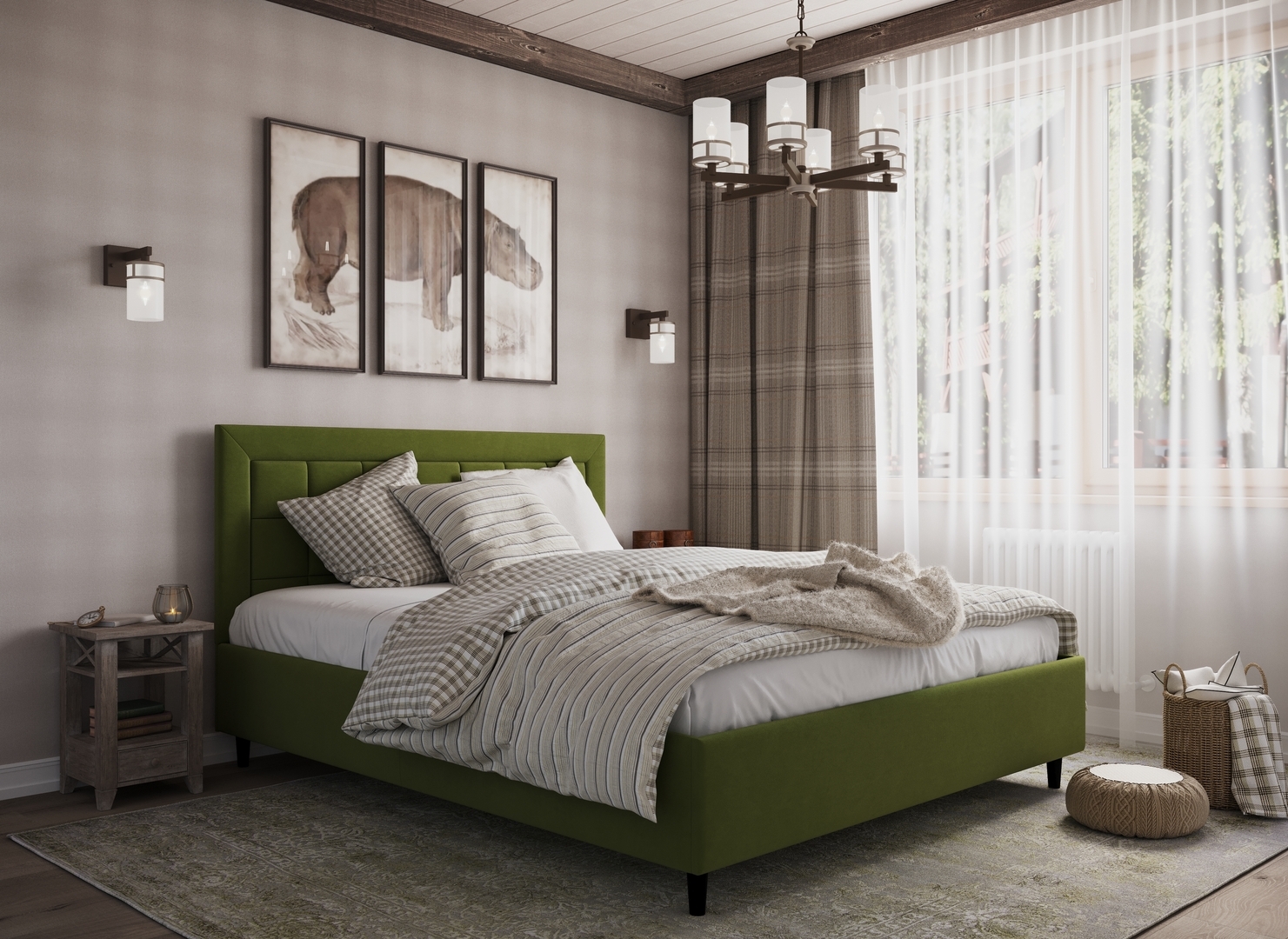 Стежка помещена в центр изголовья и обрамлена, словно картина. Объемные царги становятся гармоничным дополнением образа и завершают цельную фигуру кровати.