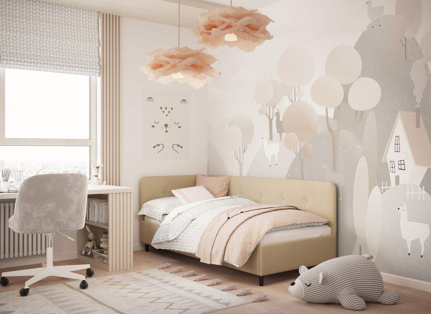 В подростковой комнате эта кровать станет стильным акцентом окружающего интерьера и возьмет на себя роль удобной кушетки для друзей, зашедших в гости.