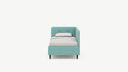 Угловая односпальная кровать MOON FAMILY 1253 с мягкой спинкой и изголовьем обладает округлыми формами, привносящими в интерьер нотки нежности. Изголовье, украшенное пуговицами, добавляет окружающему пространству шарм и уют. Высокие опоры придают кровати визуальной легкости, а также обеспечивают удобство во время уборки.