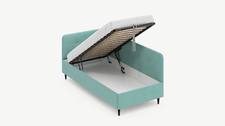 • Скрытая под основанием вместительная емкость без внутренних перегородок позволяет использовать всю площадь подкроватного пространства для хранения вещей.