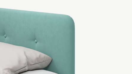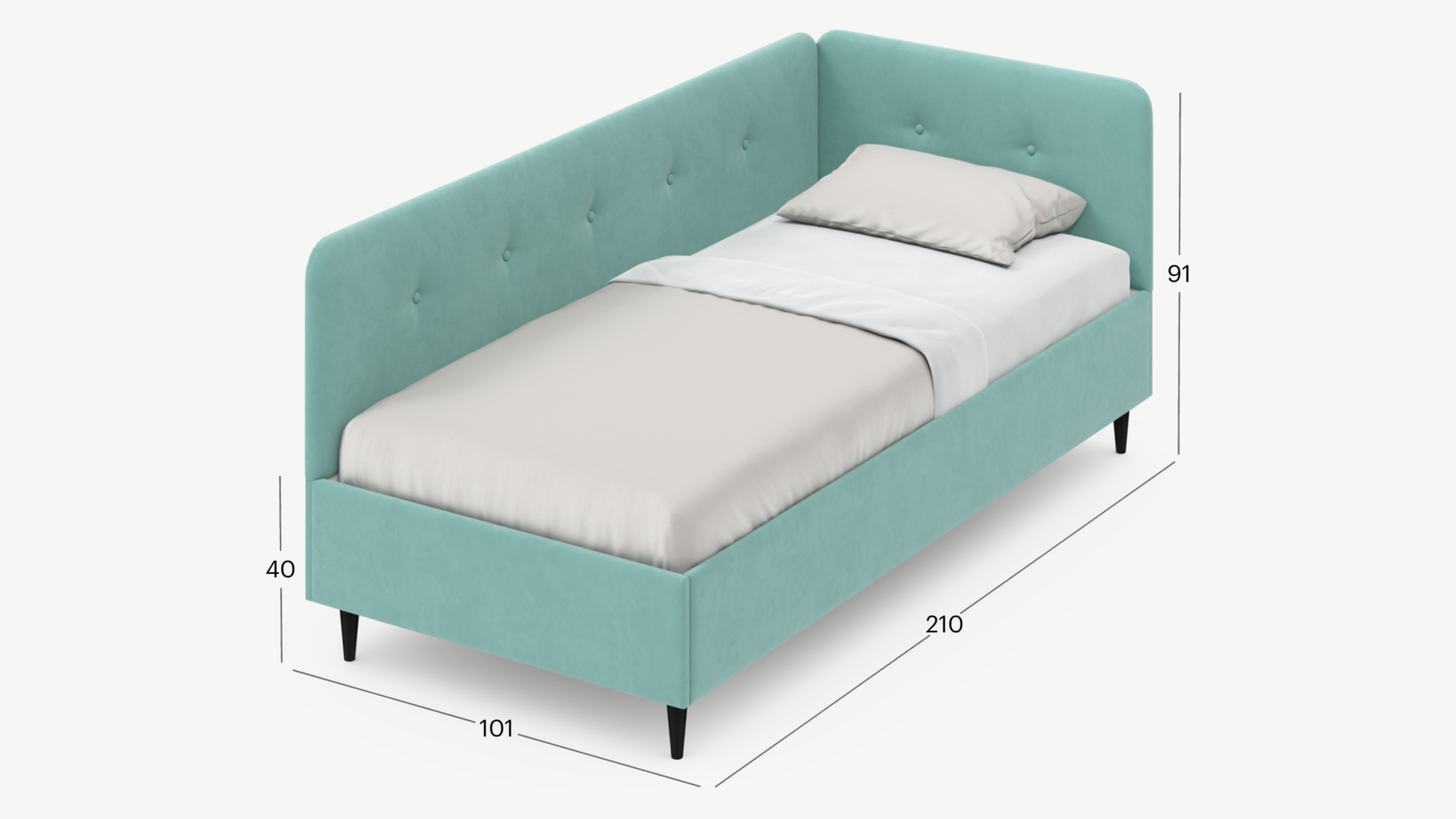 Угловая односпальная кровать MOON FAMILY 1253 с мягкой спинкой и изголовьем обладает округлыми формами, привносящими в интерьер нотки нежности. Изголовье, украшенное пуговицами, добавляет окружающему пространству шарм и уют. Высокие опоры придают кровати визуальной легкости, а также обеспечивают удобство во время уборки.