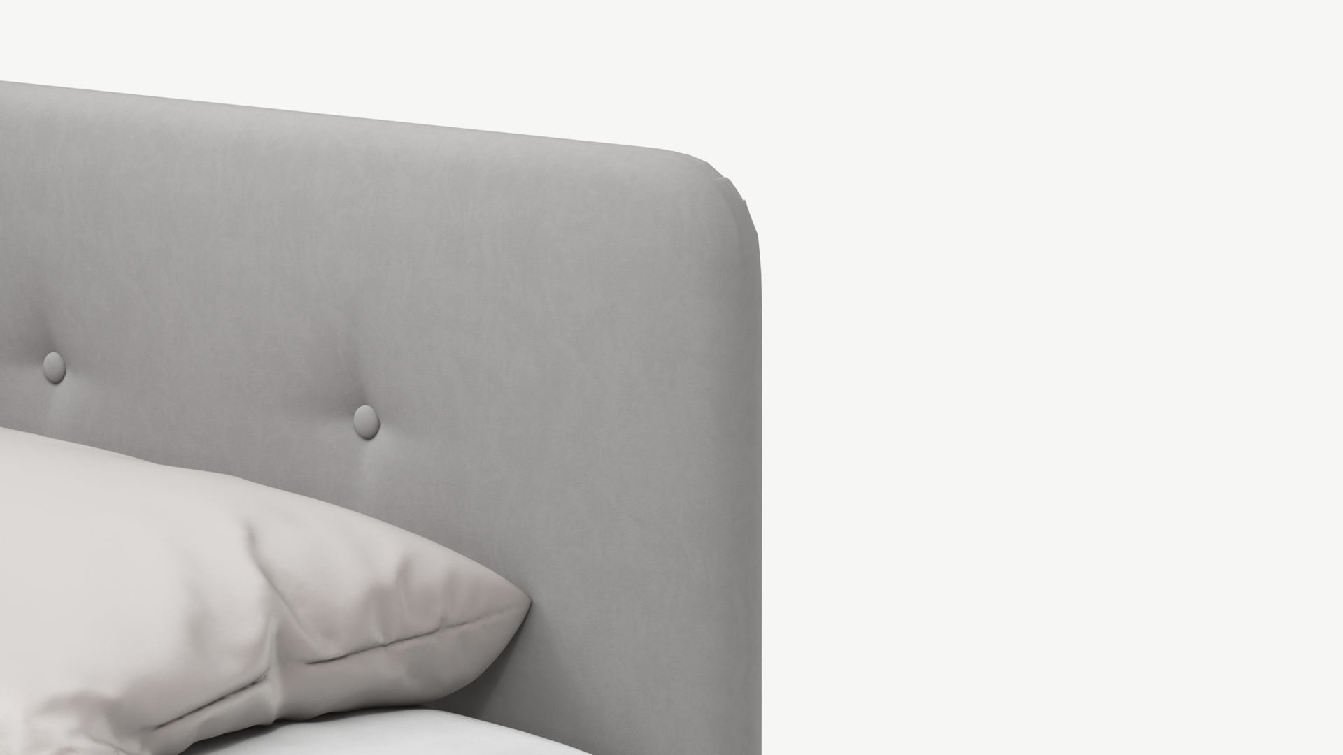 Угловая односпальная кровать MOON FAMILY 1253 с мягкой спинкой и изголовьем обладает округлыми формами, привносящими в интерьер нотки нежности. Изголовье, украшенное пуговицами, добавляет окружающему пространству шарм и уют. Высокие опоры придают кровати визуальной легкости, а также обеспечивают удобство во время уборки.