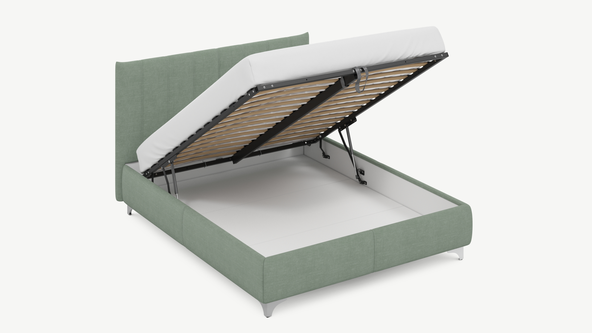 • Скрытая под основанием вместительная емкость без внутренних перегородок позволяет использовать всю площадь подкроватного пространства для хранения вещей.