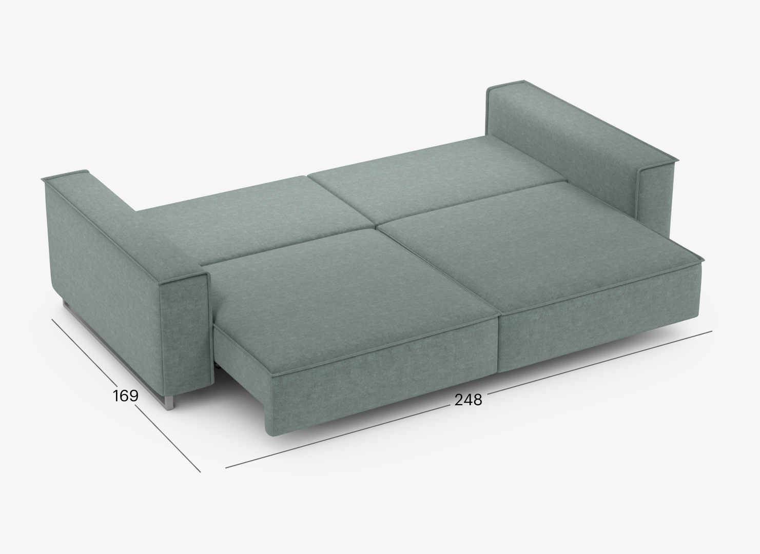 Механизм трансформации «Пантограф» подходит для ежедневного использования. Позволяет легко раскладывать и складывать диван, обеспечивая минимальный контакт дополнительных опор с напольным покрытием.
