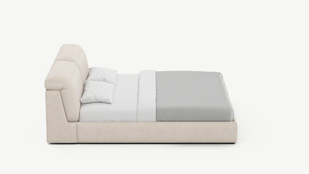 Изголовье подчеркивает эстетику MOON 1107, а также дарит дополнительный комфорт и уют спальному месту. Обратная сторона изголовья выполнена в мебельной ткани и позволяет ставить кровать в центре комнаты для зонирования пространства.